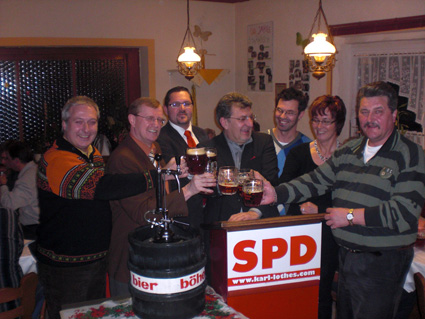 Mit ihrem traditionellen Stärkeantrinken am Dreikönigstag startete die Pegnitzer SPD in der Glück- Auf- Gaststätte ins Jahr 2009. Der Ortsvorsitzende Oliver Winkelmaier ließ das vergangene Jahr Revue passieren und schwor die mehr als 40 anwesenden Sozialdemokraten auf die Bundestagswahl im September ein. „Wir müssen zusammenstehen und sicherstellen, dass sozialdemokratische Politik zum Wohle der Bürger auch weiterhin in der Verantwortung steht und schwarz- gelber Turbokapitalismus verhindert wird. Die Finanzkrise hat uns deutlich gezeigt, wohin das führt“.